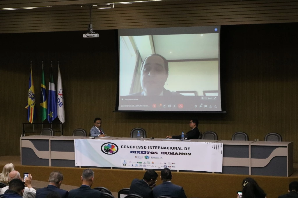Diretamente de Costa Rica, Rodrigo de Bittencourt Mudrovitsch, conduziu a palestra Direitos Humanos: Conflitos e paz - Homenagem a Antônio Augusto Cançado Trindade. “O primeiro passo, muito importante, é justamente buscar fortalecer o sistema interamericano de direitos humanos, tornando-o mais conhecido e mais reconhecido, fazendo com que se dê valor jurídico crescente não somente ao sistema interamericano de direitos humanos, mas em especial ao texto das convenções e a jurisprudência da corte interamericana de direitos humanos”.