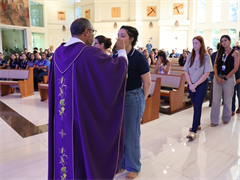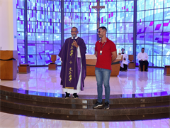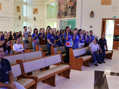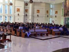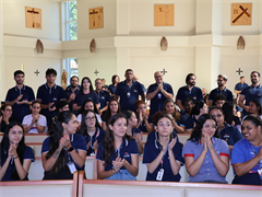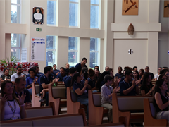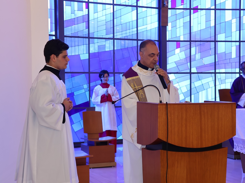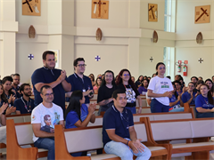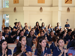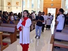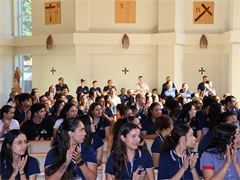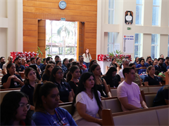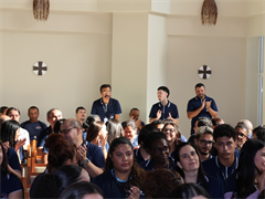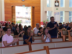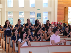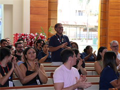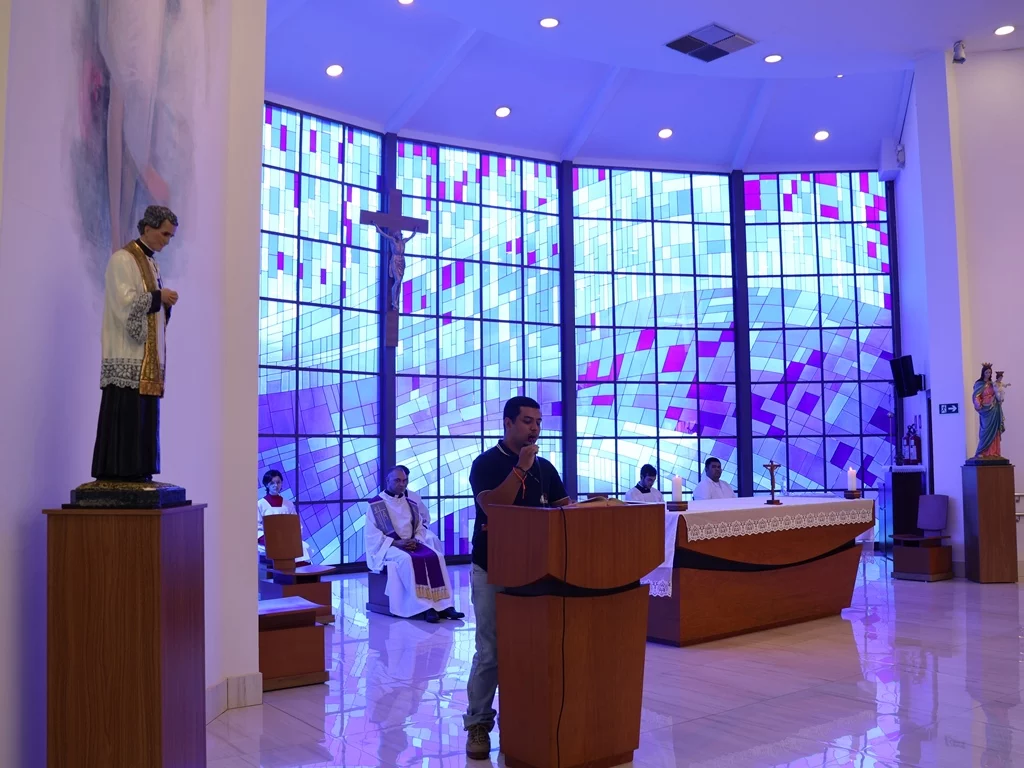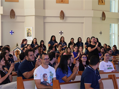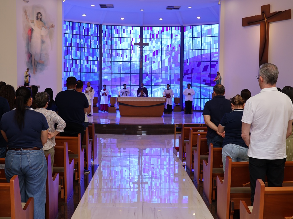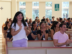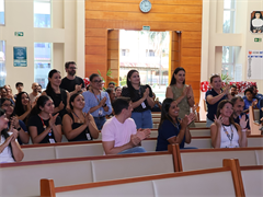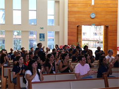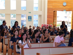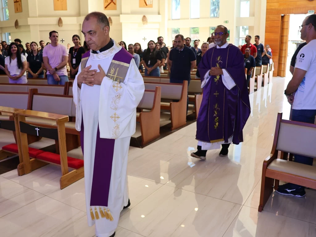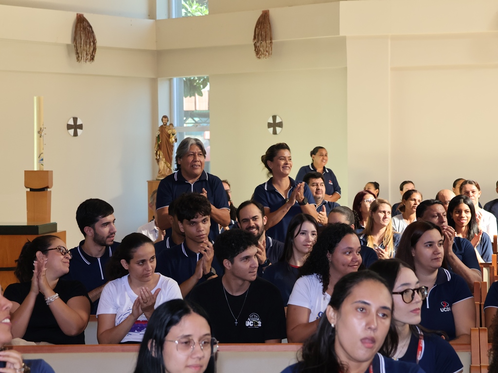 Colaboradores administrativos, docentes e pró-reitores da Universidade Católica Dom Bosco (UCDB) participaram, na tarde desta quarta-feira (1º), da celebração de Páscoa realizada na Paróquia Universitária São João Bosco. A Missa foi presidida pelo Reitor da UCDB, Padre Hermenegildo Conceição Silva, e concelebrada pelo Pró-Reitor de Pastoral e Assuntos Comunitários, Padre Elias Roberto.