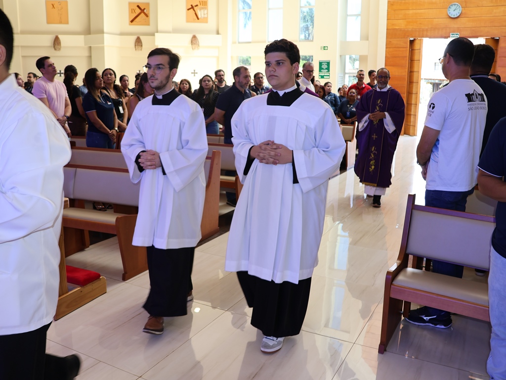 Durante a homilia, padre Hermenegildo destacou o valor da fidelidade a partir do exemplo de Jesus Cristo. “Não há prova maior de amor do que dar a vida pelos seus. Este é Jesus, e é esse Jesus que somos convidados a seguir: fiel, ao contrário de Judas, que por trinta moedas entrega e trai. Por isso, é importante refletirmos sobre a fidelidade àquilo que assumimos em nossa vida, no casamento e no trabalho”, afirmou.