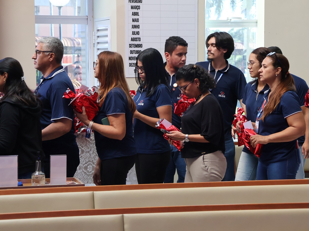 A celebração foi organizada pelas áreas de Recursos Humanos e Organizacionais (RHO) e pela Pastoral Universitária. Ao final da celebração, os colaboradores receberam caixas de chocolate.
