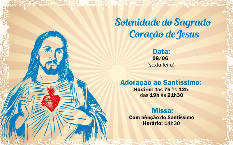 A Paróquia Universitária São João Bosco realiza nesta sexta-feira (8), às 14h30, Missa solene do Sagrado Coração de Jesus, Festa celebrada pela Igreja Católica na semana seguinte à Festa de Corpus Christi. Também haverá procissão e benção ao Santíssimo Sacramento.