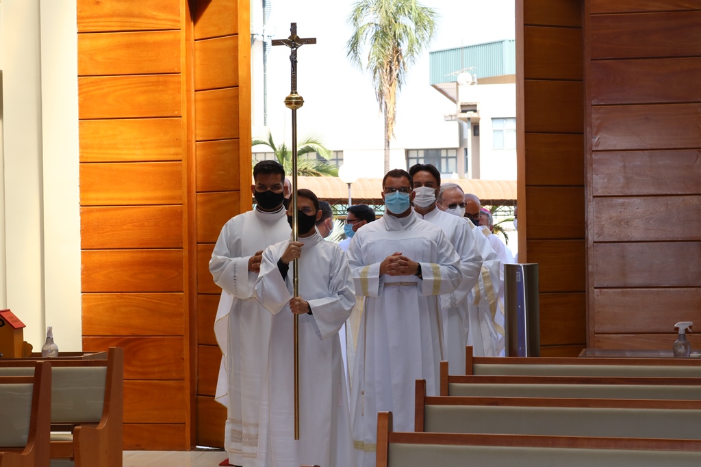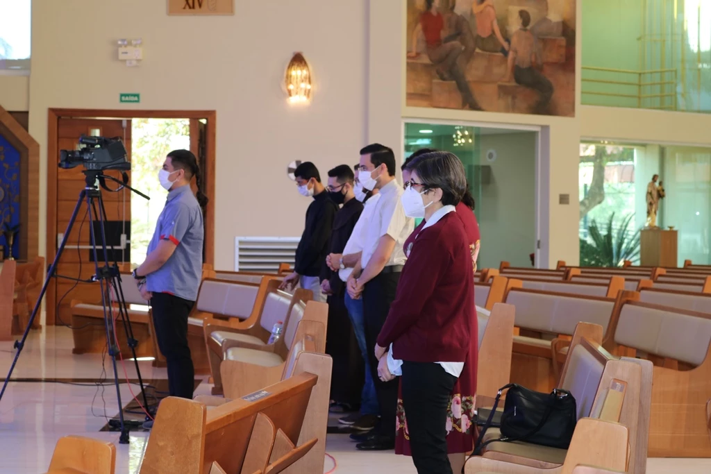 Docentes e alunos dos cursos participaram de forma on-line e também presencial, mantendo-se o distanciamento e todos os protocolos de biossegurança. A missa foi transmitida pelo canal do Youtube da Paróquia Universitária São João Bosco.