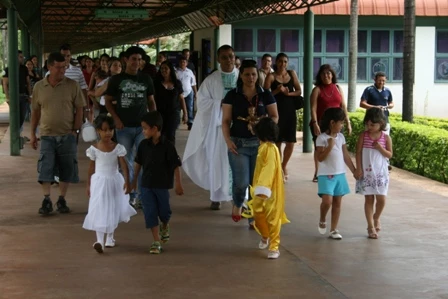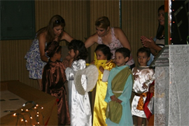 Além da benção feita pelo Pe. Pedro, a missa foi marcada por uma apresentação teatral dos alunos do Centro de Educação Infantil São Domingos Sávio (CEI), que representaram a história do nascimento de Jesus Cristo