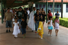 Para encerrar a missa, os colaboradores presentes fizeram uma procissão até o presépio, exposto na entrada principal da UCDB, para comemorar o nascimento do menino Jesus. Em seguida os colaboradores participaram do almoço de confraternização nas quadras cobertas.