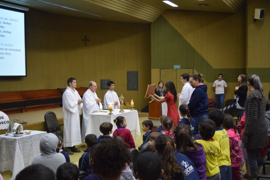 Aconteceu ontem na Universidade Católica Dom Bosco (UCDB) uma Missa Solene em comemoração ao mês de Dom Bosco. Celebrada pelo Reitor da Católica, Pe. José Marinoni, a missa contou com a participação especial dos alunos do Centro de Educação Infantil São Domingos Sávio (CEI), acadêmicos e professores da Instituição.