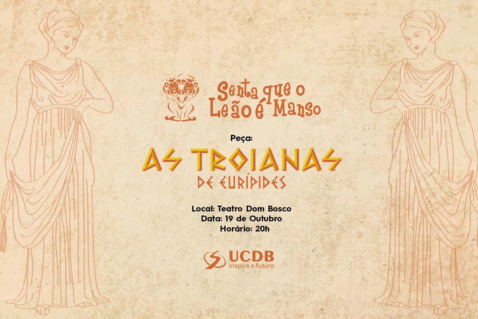 Com entrada gratuita para o público, na noite desta sexta-feira (19), às 20h, a peça “As Troianas” escrita pelo poeta grego Eurípedes será apresentada, no Teatro Dom Bosco, pelo Senta que o leão é manso — grupo teatral da Universidade Católica Dom Bosco (UCDB). A história é uma adaptação de Jean Paul Sartre e direção do professor Roberto Figueiredo, coordenador da Área de Cultura e Arte da Católica.