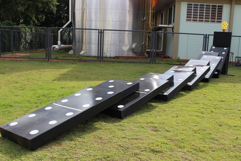 Área de Cultura e Arte da Universidade Católica Dom Bosco (UCDB) promove a partir deste mês uma nova exposição no campus Tamandaré. Localizada no gramado, em frente ao Pátio UCDB, a intervenção artística é composta por peças de dominós em tamanho gigante dispostas em efeito cascata, a estrutura leva a um vaso com flores localizado no topo da última peça.