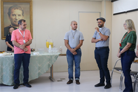 Padre Rafael agradeceu a recepção e relembrou um pouco da trajetória até chegar à UCDB. Ele tem 33 anos, foi ordenado no dia 17 de julho de 2021, no Oratório Filhos de Dom Bosco, na cidade onde nasceu (Rondonópolis-MT), com o lema “É Cristo que vive em mim” (Gl 2,20). Trabalhou como vigário paroquial na cidade até o início de 2022. Em março do mesmo ano assumiu a paróquia mais antiga da Missão Salesiana de Mato Grosso, que é São Gonçalo do Porto, em Cuiabá.