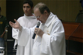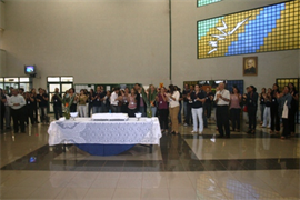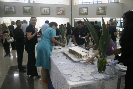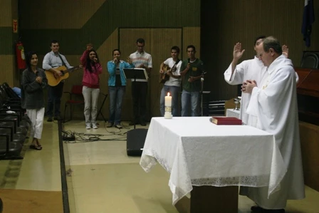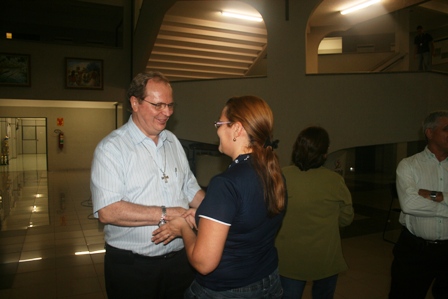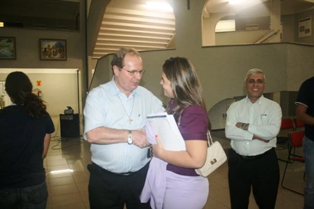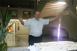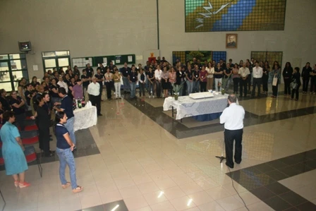 À tarde, foi a vez dos colaboradores surpreenderem o Reitor, com um momento de confraternização, no saguão do bloco Administrativo. Já no período noturno, a missa tradicional de quinta-feira foi em homenagem ao aniversariante, no anfiteatro Dom Bosco, localizado no bloco A.