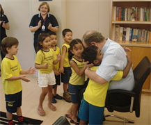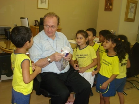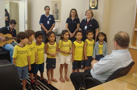 Ontem foi comemorado o aniversário do Reitor da Universidade Católica Dom Bosco (UCDB), Pe. José Marinoni. O salesiano foi homenageado nos três períodos. Pela manhã, alunos do Centro de Educação Infantil São Domingos Sávio visitaram-no em seu gabinete e fizeram apresentações de músicas.