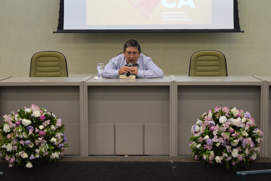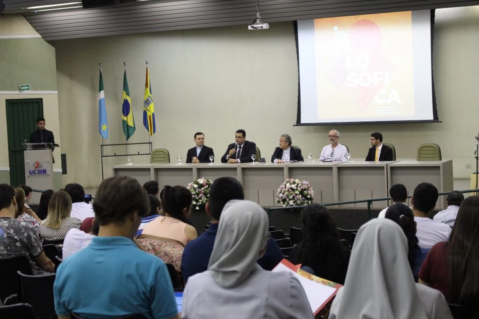 “As influências da Idade Média na Contemporaneidade” é tema 34ª Semana Filosófica da Universidade Católica Dom Bosco (UCDB). O evento foi aberto com uma solenidade, na noite desta segunda-feira (18), no anfiteatro do bloco B do campus Tamandaré, e contou com a participação do arcebispo metropolitano de Campo Grande, Dom Dimas Lara Barbosa. Ele integrou a mesa junto com os professores de Filosofia da UCDB Dr. Josemar de Campos Maciel, Me. Márcio Trevisan e com o coordenador do curso Me. Victor Hugo de Oliveira Marques.