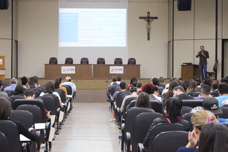 Acadêmicos do 10° semestre do curso de Arquitetura e Urbanismo da Universidade Católica Dom Bosco (UCDB) participaram, nessa quarta-feira (16), da palestra “Diretrizes para o desenvolvimento do município de Campo Grande” que apresentou aos futuros profissionais o Plano Diretor da cidade.