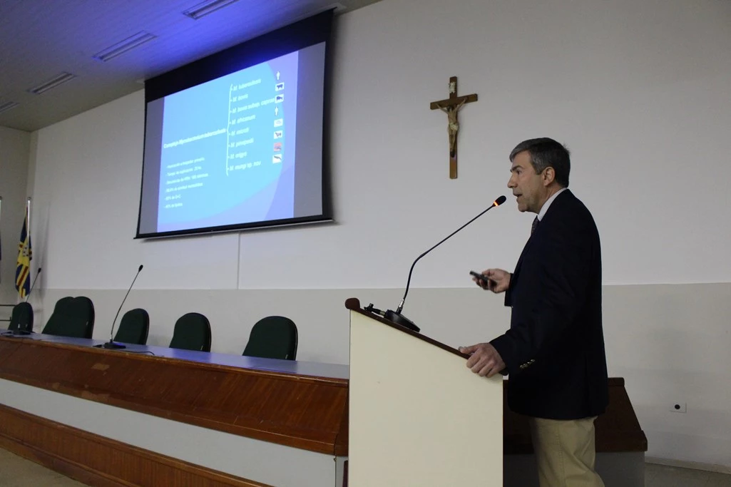 “Epidemiologia Molecular de Tuberculosis por Mycobacterium bovis” foi o tema da palestra ministrada na segunda-feira (27/8) pelo professor argentino Martins José, do Instituto Nacional de Tecnologia Agropecuária (Inta), no anfiteatro da Biblioteca Pe. Félix Zavattaro da Universidade Católica Dom Bosco (UCDB). O encontro faz parte da disciplina de Seminários Integrados do programa de pós-graduação em Biotecnologia.