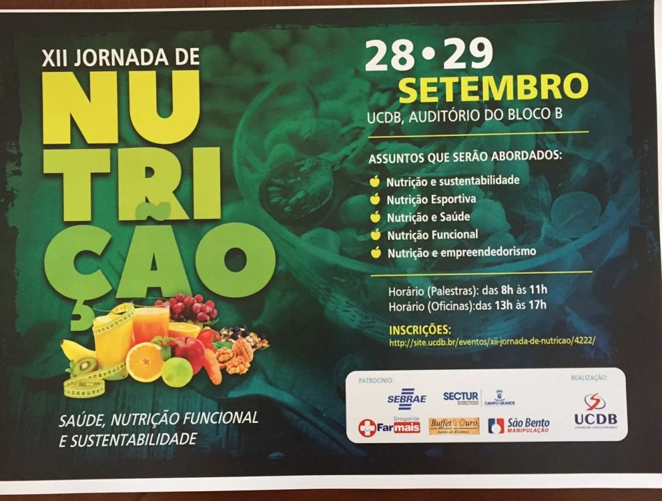 Evento segue até amanhã (19) e irá promover mais quatro palestras e outros três minicursos. Confira a programação completa pelo site da UCDB, basta clicar aqui. Para mais informações entre em contato com a coordenação do curso de Nutrição por meio do número (67) 3312-3455.