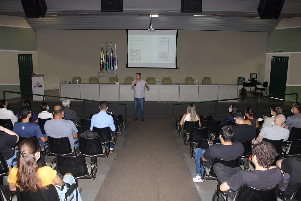 “O papel do ambiente construído na promoção de uma vida ativa e saudável: Projeto amigos do parque e revitalização do Parque dos Poderes” foi o tema da palestra ministrada nesta terça-feira (8) pelo Secretário de Estado de Infraestrutura, Eduardo Riedel, e pelo presidente da Fundação Estadual de Esporte, Marcelo Miranda, na aula magna dos cursos de Educação Física, Arquitetura e Urbanismo, Engenharia Sanitária e Ambiental e Ciências Biológicas da Universidade Católica Dom Bosco (UCDB).