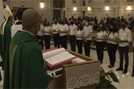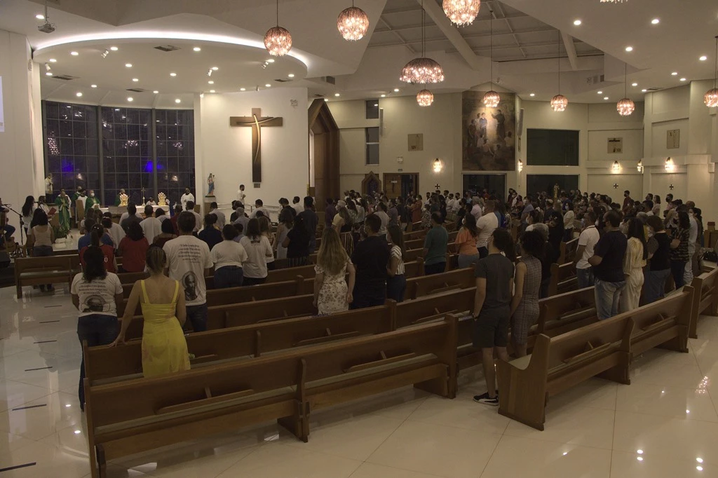 A Paróquia Universitária São João Bosco realizou ontem (19) a investidura de novos ministros extraordinários da Comunhão Eucarística na missa do 25º Domingo do tempo Comum presidida pelo arcebispo metropolitano da Arquidiocese de Campo Grande, Dom Dimas Lara Barbosa, e concelebrada pelo Reitor da Universidade CAtólica Dom Bosco (UCDB), Pe. José Marinoni, pelo Pró-Reitor de Pastoral e Assuntos Comunitários, Pe. Idenilson Lemes da Conceição, entre outros.