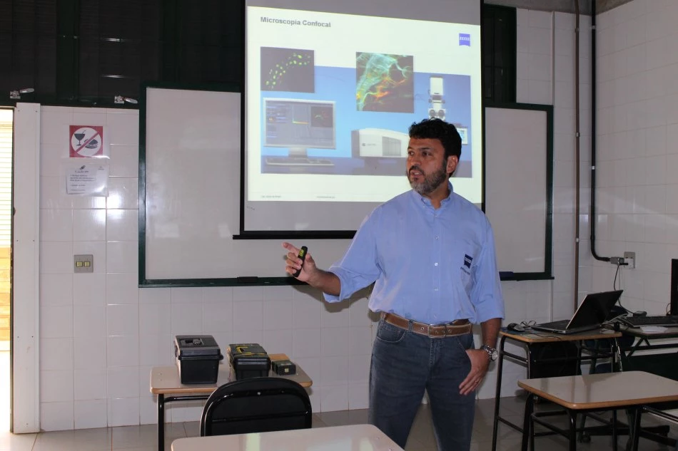A parte prática do treinamento “Conceitos sobre Microscopia de Luz” começa hoje (28) e segue até quinta-feira (29), na sala D109 no bloco Biossaúde. O curso, voltado para colaboradores e acadêmicos da Universidade Católica Dom Bosco (UCDB), é ministrado pelo assessor da Carl Zeiss do Brasil, Ricardo Esquivel Torres.