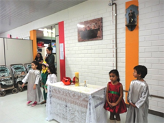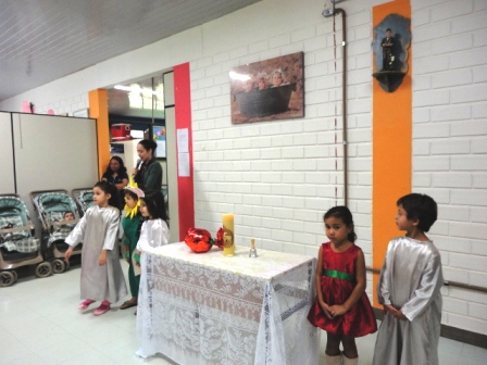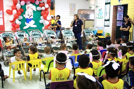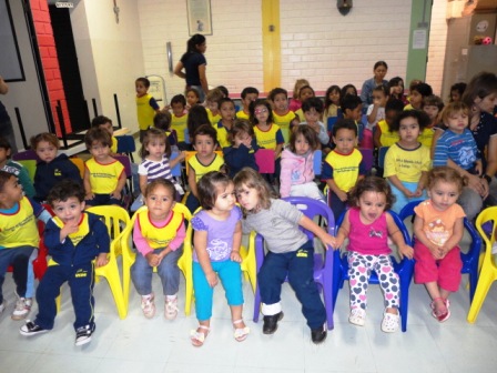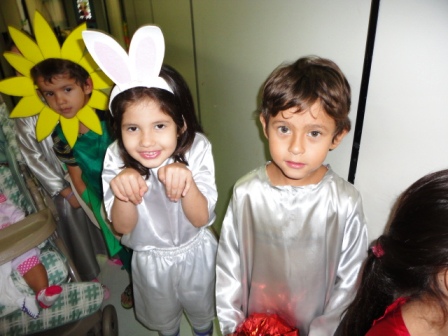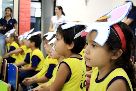Na última sexta-feira (30 de abril), as crianças do Nível III apresentaram um teatro, em que representaram de forma lúdica o verdadeiro sentido da Páscoa, a ressurreição de Jesus Cristo. Logo depois, as crianças de 2 a 5 anos tiveram uma aula de estimulação nutricional, em que aprenderam a importância de comer verduras e passaram por uma avaliação nutricional individual, realizadas pelas extensionistas de Nutrição Aline Fernandes Correa, Thaiana Sandim, Patricia e Bianca. No final, todos os alunos ganharam coelhinhos de chocolate.