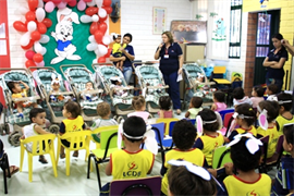 Já na segunda-feira (2), as crianças participaram de uma comemoração musical, em que cada turma apresentou músicas como “Eu sou um coelhinho” e “Não foi o coelhinho” e dançaram as coreografias ensaiadas com a professora de música Marissol Carrasco, que organizou a comemoração junto com a coordenadora do CEI, Célia Regina Miglioli.