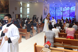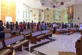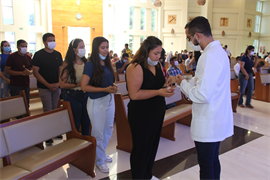 A celebração contou ainda com a presença dos Pró-Reitores da Católica, professor Cristiano Marcelo Espínola Carvalho (Pesquisa e Pós-Graduação), e a professora Rúbia Renata Marques (Graduação e Extensão), além de coordenadores de curso, docentes, acadêmicos e colaboradores. Além da missa dominical, acadêmicos e colaboradores também podem participar das missas às quintas-feiras no horário do intervalo das aulas.