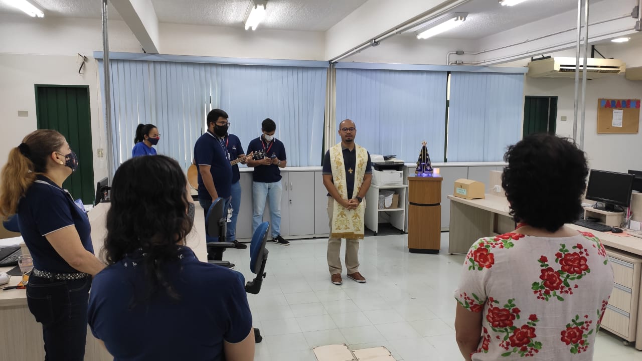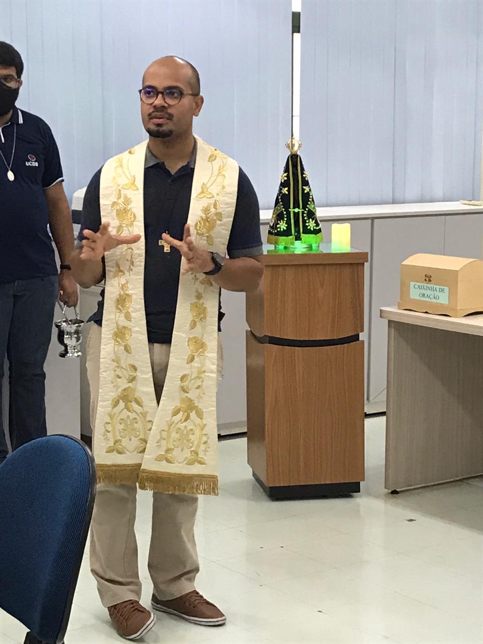 O padre Idenilson Lemes da Conceição, pró-reitor de Pastoral e assuntos comunitários da Universidade Católica Dom Bosco (UCDB), juntamente com a equipe da Pastoral Universitária, tem visitado neste mês de outubro, mês dedicado a Nossa Senhora Aparecida, os setores da Instituição realizando bençãos com a imagem peregrina.