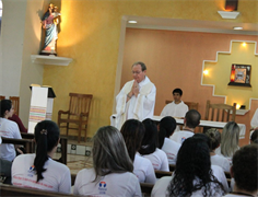O chanceler da UCDB e presidente da Missão Salesiana de Mato Grosso (MSMT), Pe. Gildásio Mendes dos Santos, esteve com os jovens pela manhã do sábado (16) e realizou a Lectio Divina, no dia em que a Congregação Salesiana celebrou os 199 anos de Dom Bosco e a abertura do bicentenário do Padroeiro, que será celebrado em 2015.