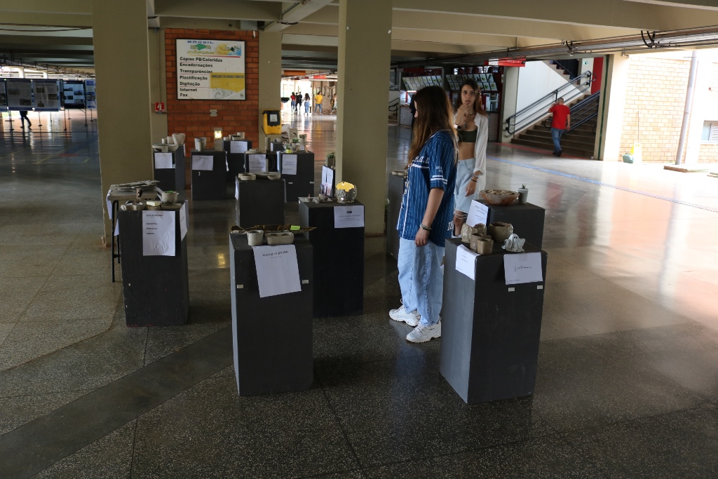 Acadêmicos do 4º semestre (matutino e noturno) do curso de Arquitetura e Urbanismo da Universidade Católica Dom Bosco (UCDB) realizam até sexta-feira (7), no pátio do bloco A, a exposição apresentando peças decorativas ou de utilidade prática feitas com cimento. A atividade faz parte da disciplina ‘Materiais de construção e acabamentos l’, ministrada pelo professor Alessandro Campos.
