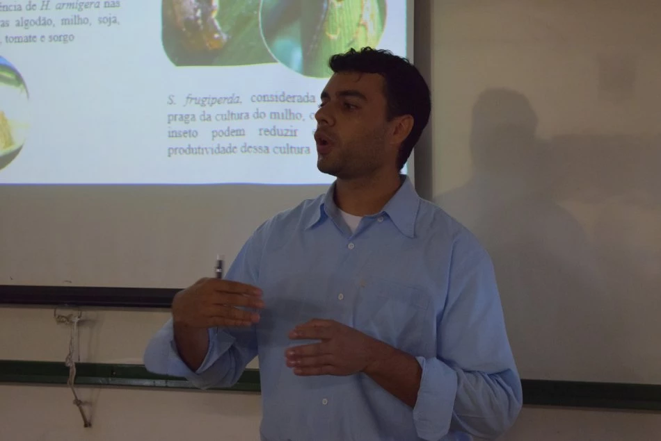 Na pesquisa, Guilherme utilizou o inibidor de protease (uma espécie de mecanismo de defesa) da planta araruta para desenvolver o controle de super população de praga nas lavouras, mais especificamente a lagarta do cartucho. “Araruta é uma planta alimentícia de um valor não muito comercial, então tentamos resgatá-la para que pudesse atuar como um controlador de pragas natural”, explicou o mestrando. Guilherme utilizou vários processos ao longo da pesquisa, como fracionamento, quantificação proteica e determinação molecular. “Estou apenas no começo da pesquisa, mas é algo promissor e tenho sonho de transformar esta ideia em um produto final”, finalizou o discente.