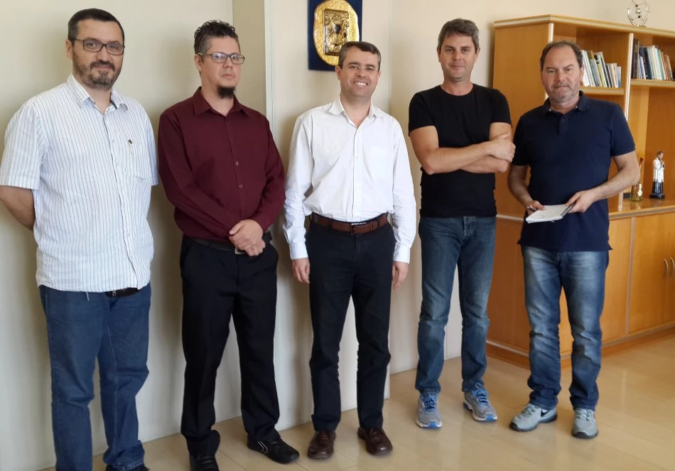 O pesquisador Stefano Tiozzo, da Universitá degli Studi di Padova (Itália), visitou a Universidade Católica Dom Bosco (UCDB), na última semana, e foi recebido pelo Reitor, Pe. Ricardo Carlos, e pelo Pró-Reitor de Pesquisa e Pós-graduação, Hemerson Pistori.