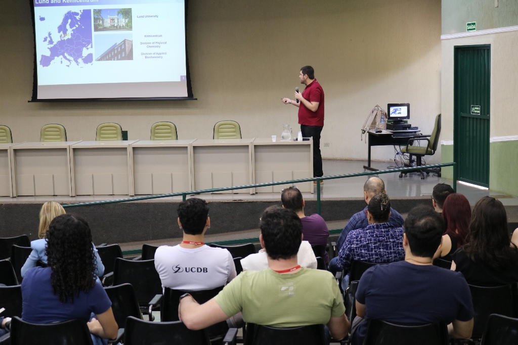 O pesquisador Marco Fornasier, com doutorado em Ciência Química e Tecnologias na Universidade de Cagliari (Itália), docente da Universidade de Lund, localizada na Suécia, ministrou a palestra da aula magna do Programa de Pós-graduação mestrado e doutorado em Biotecnologia da Universidade Católica Dom Bosco (UCDB).