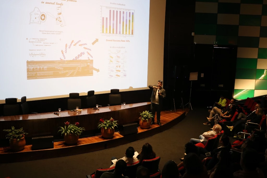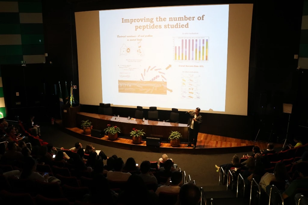 O professor Octávio participou da mesa de abertura, que tratou da “Inovação e biomas no cenário nacional: Desafios e oportunidades para os pequenos negócios de bioeconomia”. Ele apresentou um pouco do trabalho que vem sendo desenvolvido pelo Instituto Nacional de Ciência e Tecnologia Bioinspir, sediado na UCDB.