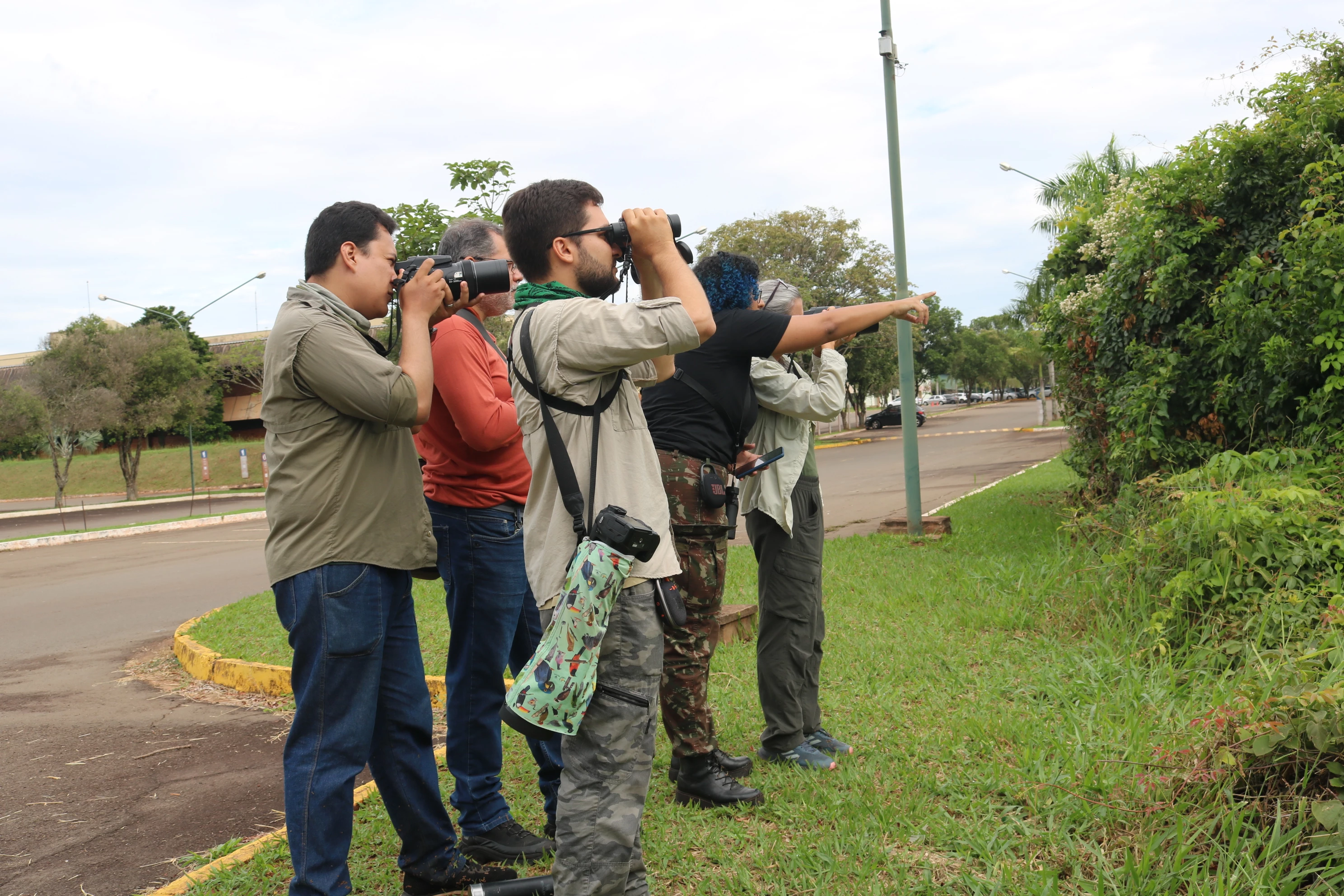 Eles compartilharam um pouco da trajetória como condutores de observação na natureza, passando orientações e técnicas aos participantes. Hoje (7) pela manhã, um grupo percorreu o campus UCDB e observou, em pouco tempo, mais de 40 espécies.