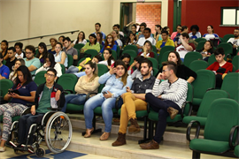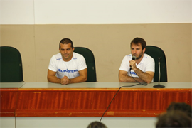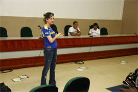 Os dois pilotos fazem parte da equipe Eurofarma RC e vieram acompanhados da jornalista Patrícia Casagrande. Os três tiraram dúvidas dos acadêmicos sobre preparação física e psicológica para as corridas, o trabalho da assessoria de imprensa, captação de patrocínio, as diferenças da Stock Car para outras categorias de automobilismo e estratégias de corrida.