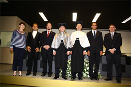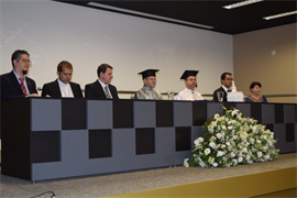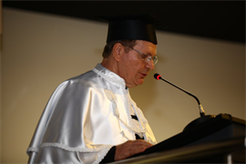 A solenidade na manhã de hoje no anfiteatro do Bloco M, teve início com a apresentação com o Grupo de Cordas da Católica. Logo após, Pe. Marinoni emocionou aos presentes com seu discurso de despedida. “Este é para mim um momento muito especial. Pela última vez falo como Reitor desta querida Universidade. Mesmo sabendo que apenas estamos encerrando mais uma etapa, sei também que é dado início a um novo ciclo. Deixo a Reitoria com a convicção de termos lutado; deixo o cargo com muita gratidão a todos. Meu muito obrigado a todos, em especial aos queridos acadêmicos, preocupados em se formarem como bons cristãos e honestos cidadãos”.