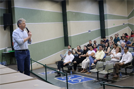 O professor Taner representou o Reitor, Pe. José Marinoni, no evento: “É muito bom ver o professor Márcio [Fundect], o secretário Jaime Verruck, ver os alunos dos nossos programas e os professores e ter uma aula dessa magnitude. É importante para que vocês percebam a responsabilidade de cada um de nós aqui. A produção científica, em muitos momentos, vai parecer solitária para vocês. Mas ter esse intercâmbio nos permite ver que você está sozinho e que pesquisa e ciência não são inatingíveis. Não se sinta sozinhos. Ontem foi o Dia Estadual da Educação Superior, lei assinada em 2017, em que há o reconhecimento a pesquisadores, a professores, profissionais que trabalham na educação e que fazem dessa a diferença na vida das pessoas da nossa capital, do nosso estado. Vocês estão fazendo a diferença na nossa sociedade”, enfatizou.