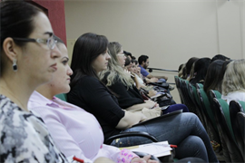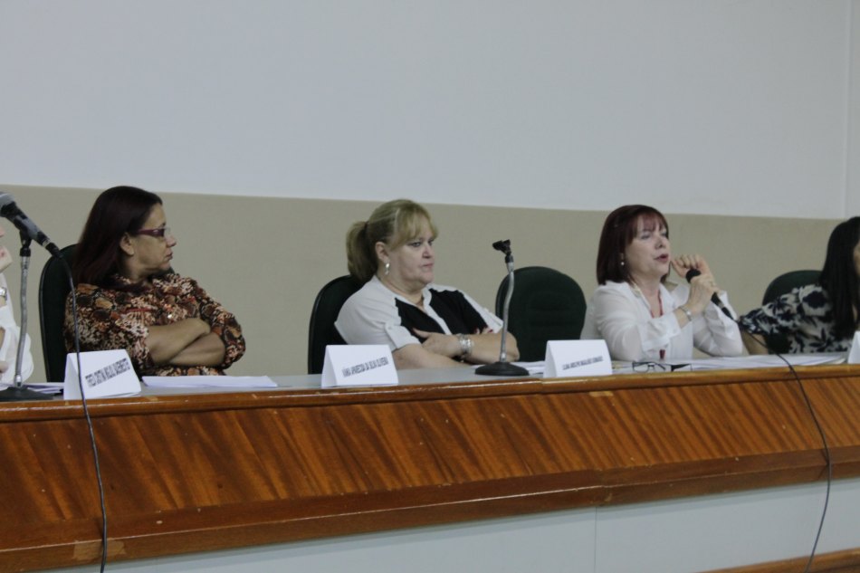 A primeira mesa de palestrantes teve o tema “A atuação profissional no campo jurídico: aspectos da avaliação psicológica e dos encaminhamentos”, com a participação da coordenadora de mesa, professora Dra. Liliana Andolpho Magalhães Guimarães e as palestrantes Céres Mota Duarte, Dra. Sonia Grubits, Vania Aparecida da Silva Oliveira Nogueira e Tereza Cristina Miglioli Bauermeister.