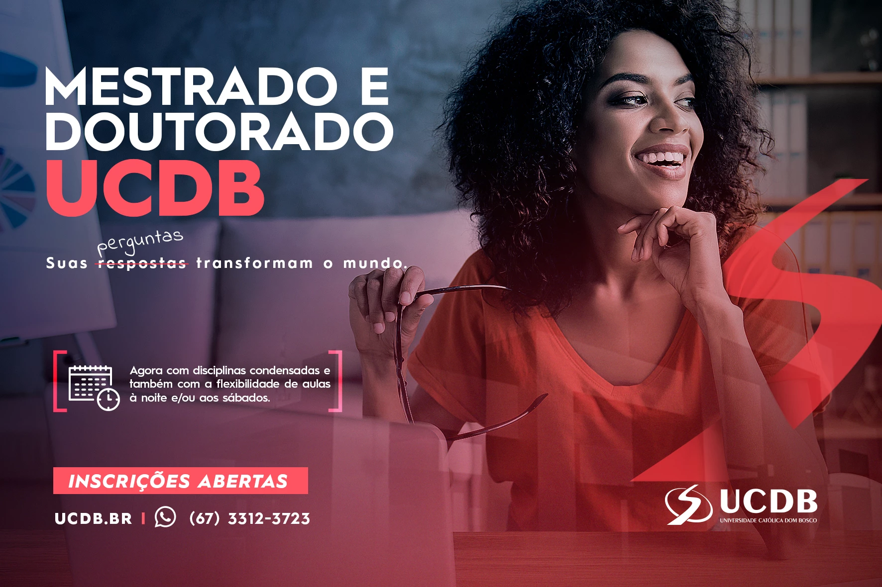 Termina nesta quarta-feira (25) o prazo de inscrição para os Programas de Pós-graduação Stricto Sensu — Mestrado e Doutorado da Universidade Católica Dom Bosco (UCDB). Os programas são nas áreas de Psicologia, Biotecnologia, Educação, Desenvolvimento Local e Ciências Ambientais e Sustentabilidade Agropecuária, e as inscrições podem ser feitas pela internet.