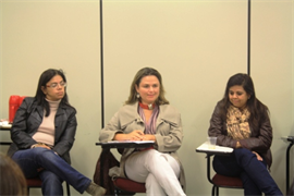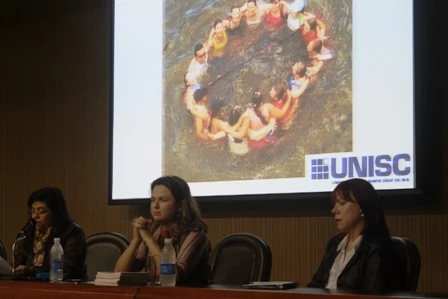 Fizeram parte da mesa-redonda a Pró-Reitora Dra. Luciane Pinho de Almeida, a debatedora Dra. Sônia Grubits, que é a coordenadora do Mestrado em Psicologia da UCDB, e a palestrante convidada, Dra. Ana Luisa Teixeira de Menezes, da Universidade de Santa Cruz do Sul (Unisc).