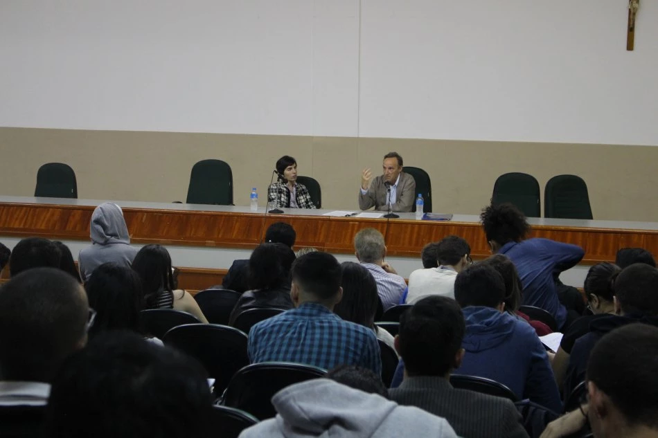 Dr. Jorge Álvarez Yaguez, da Universidad Complutense de Madrid (UCM), na Espanha, e a professora da Universidade Federal de Mato Grosso do Sul (UFMS), Dra. Marta Rios Alves Nunes da Costa, falaram sobre os pensamentos e publicações de Hannah Arendt — filósofa alemã que sobreviveu ao holocausto e, após a segunda guerra mundial, dedicou-se a estudar questões políticas e sociais e passou a ser uma das profissionais da área mais influentes do século XX.