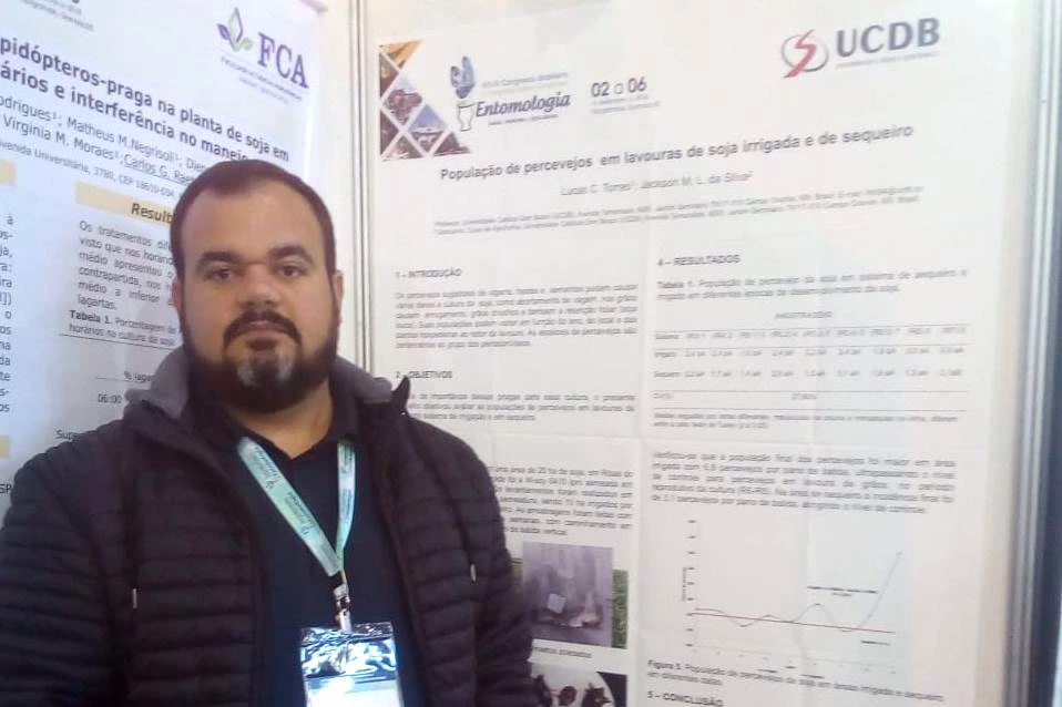 Durante os congressos, o professor da Católica, que é doutor em entomologia agrícola, apresentou dois trabalhos. Um deles trouxe um estudo realizado em Campo Grande (MS) em que foi feito um levantamento de parasitóides das famílias Braconidae e Ichneumonidae em cultivo de milho. Já o outro foi relacionado a população de percevejos lavouras de soja irrigada e de sequeiro.