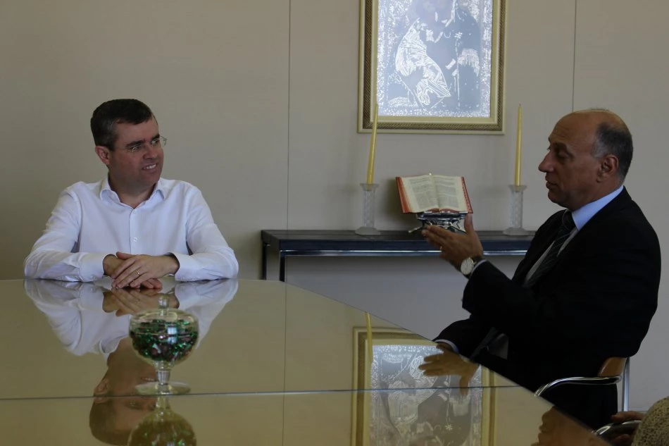Na manhã desta segunda-feira (7), o professor de Direito Romano da Faculdade de Direito da Universidade de Lisboa, Dr. Eduardo Vera-Cruz Pinto, conheceu a Universidade Católica Dom Bosco (UCDB). Acompanhado do presidente da Associação Luso Brasileira de Campo Grande, Horácio Andrino, e do vice-presidente, Fernando Cruz, o especialista participou de uma reunião com o Reitor da Católica, Pe. Ricardo Carlos e conheceu a estrutura oferecida pela Instituição.