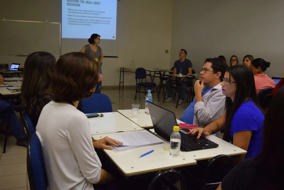 Interculturalidade e diversos contextos da aprendizagem foram abordados em grupos pequenos e trabalhados de forma geral em um diálogo entre os participantes e a pesquisadora. “Busco compreender a realidade dos acadêmicos e também passar minhas experiências para eles”, explicou Clea.