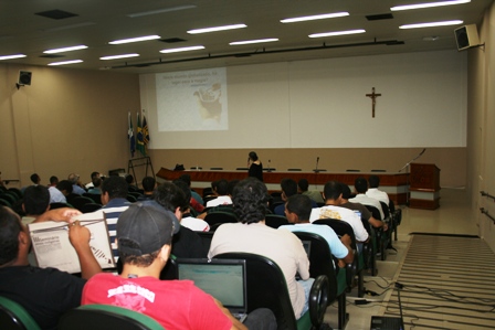 Acadêmicos da graduação de Filosofia da Universidade Católica Dom Bosco (UCDB), dentro do projeto Grupo de Estudos, estiveram presentes na sala I da Biblioteca Pe. Felix Zavattaro na noite de ontem (19). A professora Rosa Silva, docente da Universidade de São Paulo (USP), foi a palestrante do encontro intitulado “Importância das linguagens”, no qual diversos acadêmicos se reuniram para debates e reflexões.