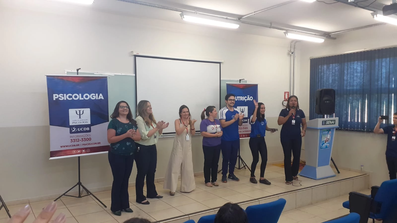 Bem estar no ambiente escolar foi o tema da roda de conversa promovida pela Escola do Sesi em parceria com a Universidade Católica Dom Bosco. De maneira descontraída, as professoras Fabiana Rabacow e Claudia Diniz (Educação Física), Flávia Feroldi (Psicologia) e Paula Alessandra Silva (Nutrição) conversaram com alunos do ensino médio sobre a área da Saúde em geral e também sobre as profissões. O evento foi viabilizado pela Área de Relacionamento (SeR) da UCDB.