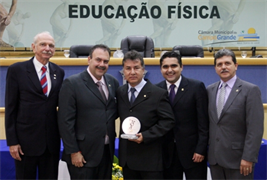 Os professores Me. Domingos Sávio da Costa, Me. Marcelo Ferreira Miranda, ambos do curso de Educação Física da Universidade Católica Dom Bosco (UCDB) e o coordenador do Setor de Esportes, Luiz Magalhães, foram homenageados em sessão solene na Câmara Municipal de Campo Grande realizada na noite desegunda-feira (29). O motivo da homenagem é o Dia do Profissional de Educação Física, comemorado amanhã.
