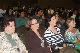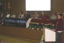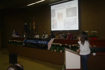 Logo depois foi realizada a mesa-redonda com profissionais atuantes na área de Letras e Pedagogia: a coordenadora do curso de Letras, professora Me. Neli Porto Soares Betoni; Dra. Maria Cristina Lopes Paniago, professora de Letras e Pedagogia na UCDB; Me. Lucia Morales, professora da rede estadual de ensino; professora especialista Alda de Sousa Machado, diretora da Escola Estadual Arlindo de Andrade Gomes; a professora Dra. Adir Casaro Nascimento; a superintendente em Gestão de Recursos Humanos Evanir Bordim Sandim; a coordenadora administrativa do Centro Infantil São Domingos Sávio (CEI/UCDB), professora Célia Regina Miglioli e finalmente, o professor Christiano Tórchi, revisor de texto e assessor do Tribunal de Justiça do Mato Grosso do Sul.