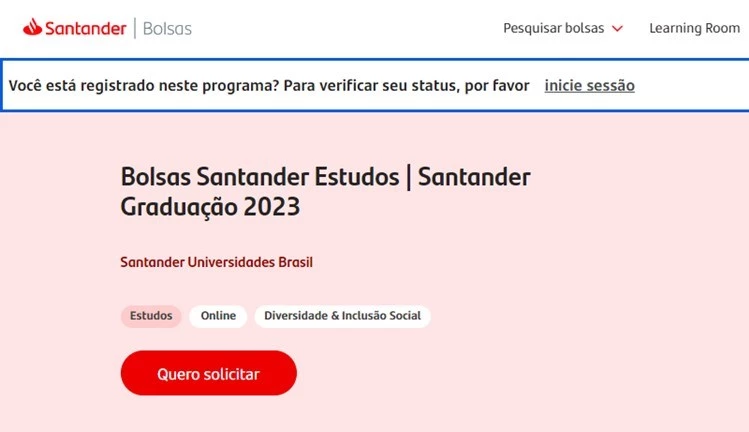 Programa de bolsas Santander Graduações 2023 está com inscrições abertas