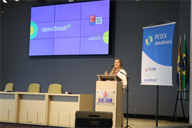 Ana Claudia Barbosa, supervisora de Competitividade da ApexBrasil, apresentou aos empresários presentes no lançamento um pouco do trabalho desenvolvido pela agência. “Somos responsáveis por ações, serviços, capacitações para fomentar a economia através da exportação. Queremos aumentar o número de produtos exportados e o valor desses produtos. Dessa forma, capacitamos as empresas para o comércio exterior. Dentre as inúmeras ações estão a participação empresarial em feiras, missões internacionais, webinares, oficinas, preparação para o e-commerce, entre outras”.