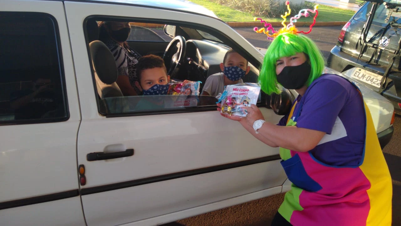 Uma tarde para matar a saudade, mesmo que de longe, e entregar um kit com livros para as crianças atendidas pelo projeto de extensão Criança Ativa. Assim foi o drive thru organizado pelos extensionistas no último dia 20, na entrada principal da UCDB Tamandaré. Com fantasias e adereços coloridos e com muita alegria, eles recepcionaram os pais e responsáveis em seus carros e entregavam para as crianças um exemplar do livro “Meu corpo é meu amigo”, de autoria de Débora Amaro e Viviane Vaz e ilustrações de Wanick Correa.