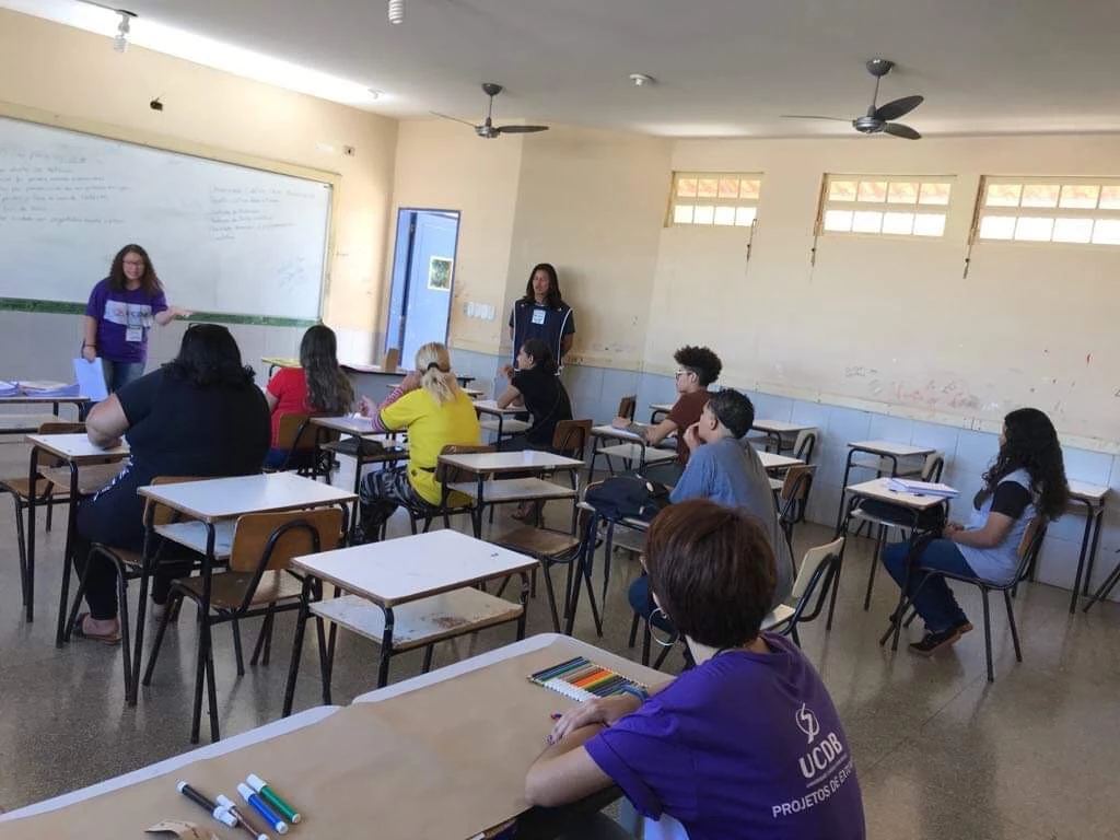 O projeto de extensão Letras: Artes e Ciência da Universidade Católica Dom Bosco (UCDB) foi levado no sábado (29/6) para a população do bairro Moreninha IV, integrando a ação da FM Educativa UCDB. A oficina, realizada na Escola José Mauro da Silva, foi destinada à estudantes que se preparam para realizar o Enem, propondo exemplos de aprendizagem da língua portuguesa, literatura e língua inglesa.